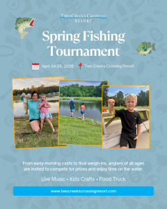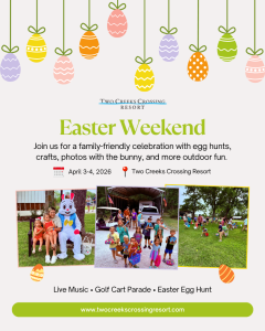 From live music and food trucks to holiday fun and family nights, there’s always something going on at Two Creeks Crossing Resort! Check back often to see what events are coming up during your stay. We love bringing people together for fun times and good memories. Follow us on Facebook and Instagram for the latest event updates, sneak peeks, and behind-the-scenes fun!