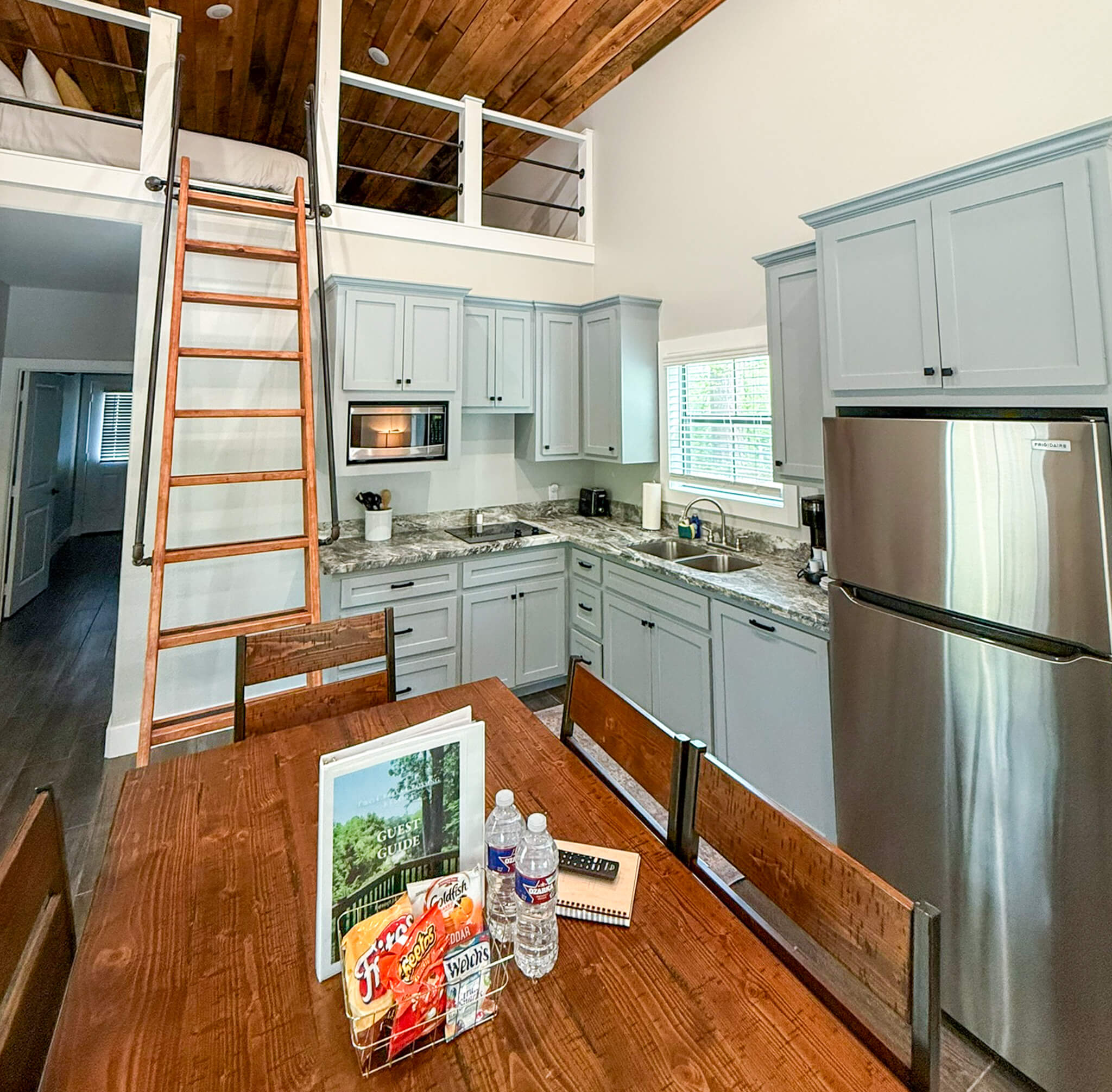 Rustic Pine is the perfect cabin for a memorable family getaway. Nestled along Rocky Creek, this spacious and cozy cabin offers a peaceful retreat surrounded by the beauty of nature. With a charming loft that sleeps four, there’s plenty of room for everyone to spread out and relax.