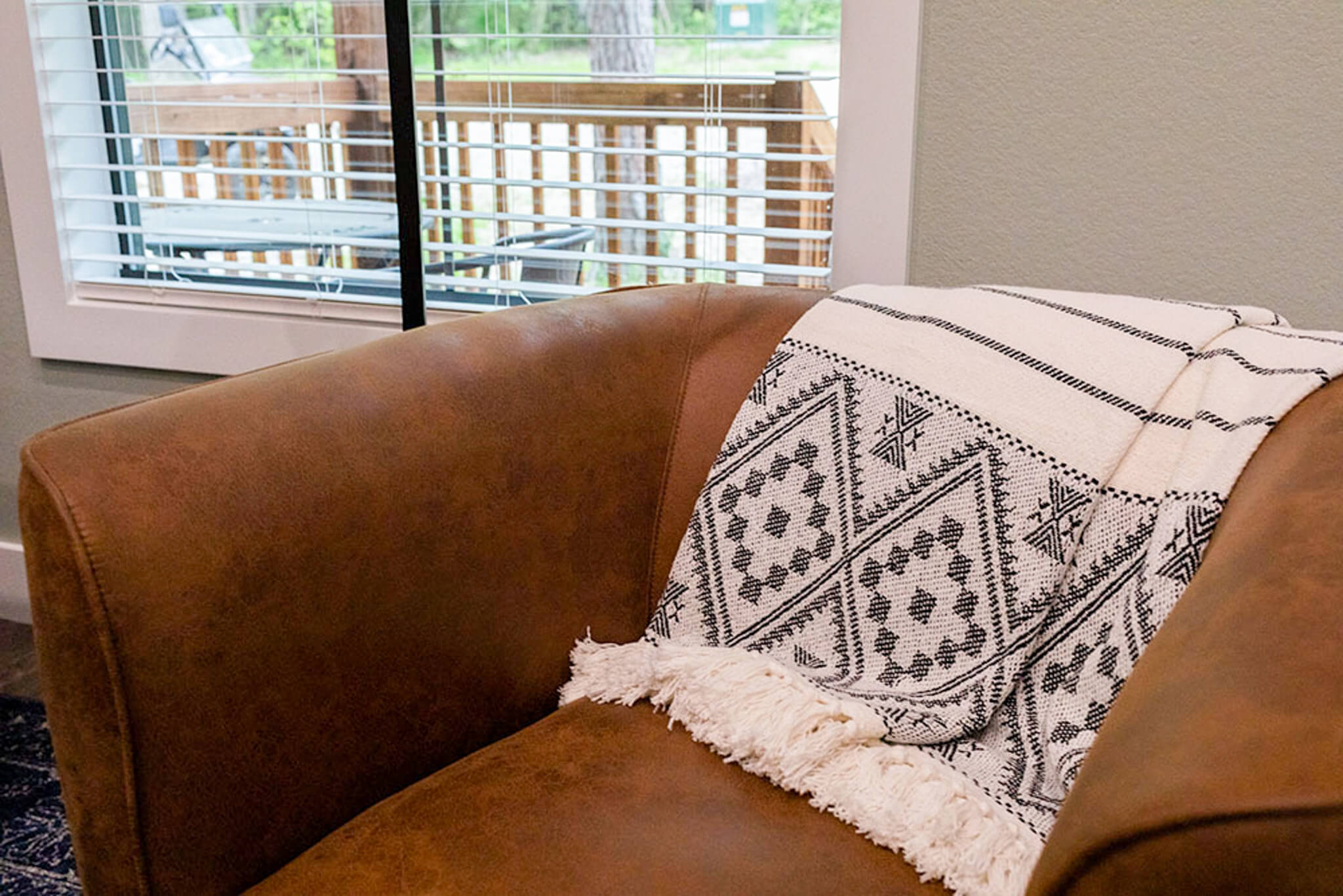 - Back porch with outdoor seating, overlooking Rocky Creek